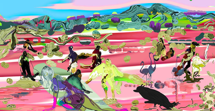 그래서 내 그림은 본질의 끝을 추구하는 추상도 아니고 실재를 통한 본질적 구상도, 감각을 통한 느낌 전달도 아니다. 기존에 있던 이미지들이 남긴 파동을 통한 본질도 실체도 아닌 허공의 신묘한 허무함이고 무의미함이며 지극히 부분적이며 무감각적인 감각을 추구한다. 완성을 거부한다. 순간적 판단과 선택을 통해 얻어내는 무한한 가능성과 그 무감각적 자유로움은 실로 내가 바라는 것이다. 내가 말하려고 하는 것은, 지금 쓰려고 하는 것은, 그리고 그리려고 하는 것은 기호 자체보다는 기호를 통한 무감각적 감각이다. 그래서 불완전할 수밖에 없고 그 길은 무한하며 매번 다르고 또 다르다